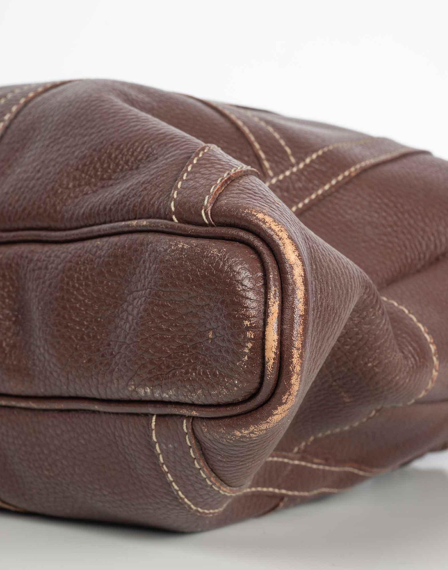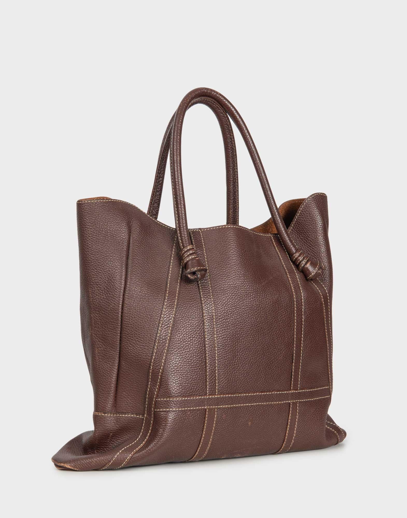 Valentino, borsa tote bag a spalla in pelle marrone. Con manici strutturati e accenti dorati con dettagli blu. La borsa include una pratica pochette rimovibile in pelle abbinata. *presenta qualche segno di usura Altezza: 39 cm Profondità: 10 cm Lunghezza: 41 cm