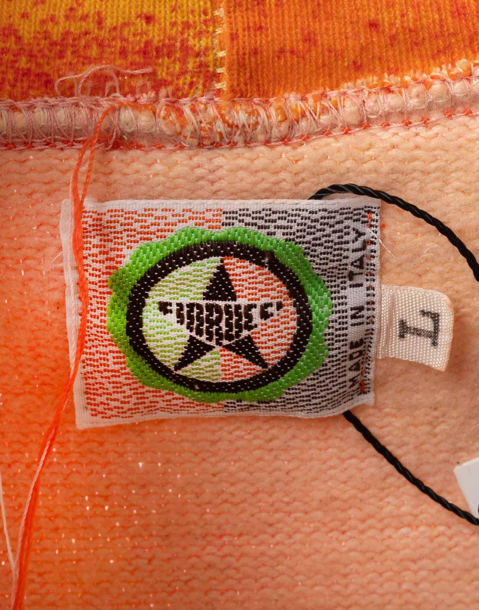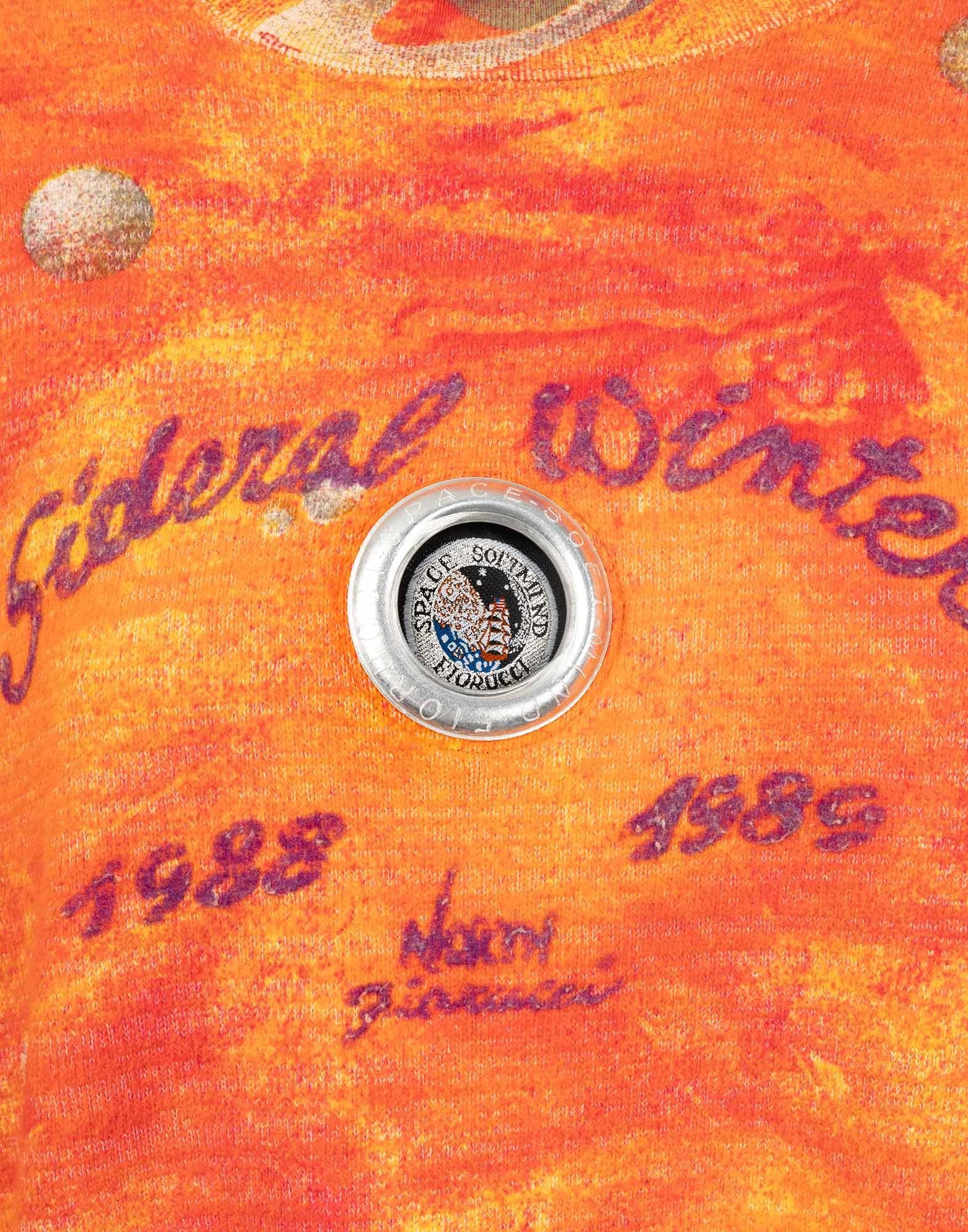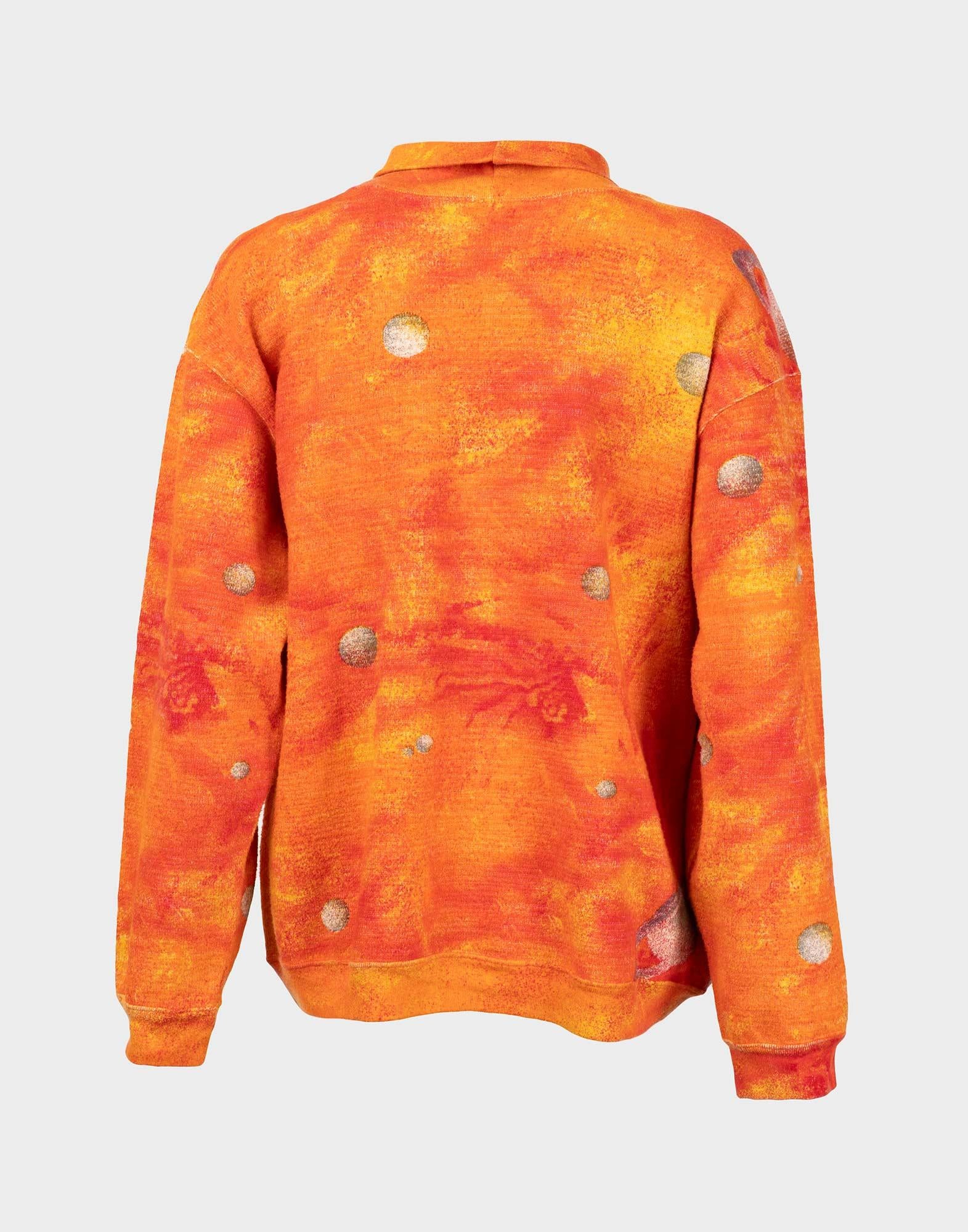 Fiorucci, orange sweater with a planet print, 100% cotton. Size L.