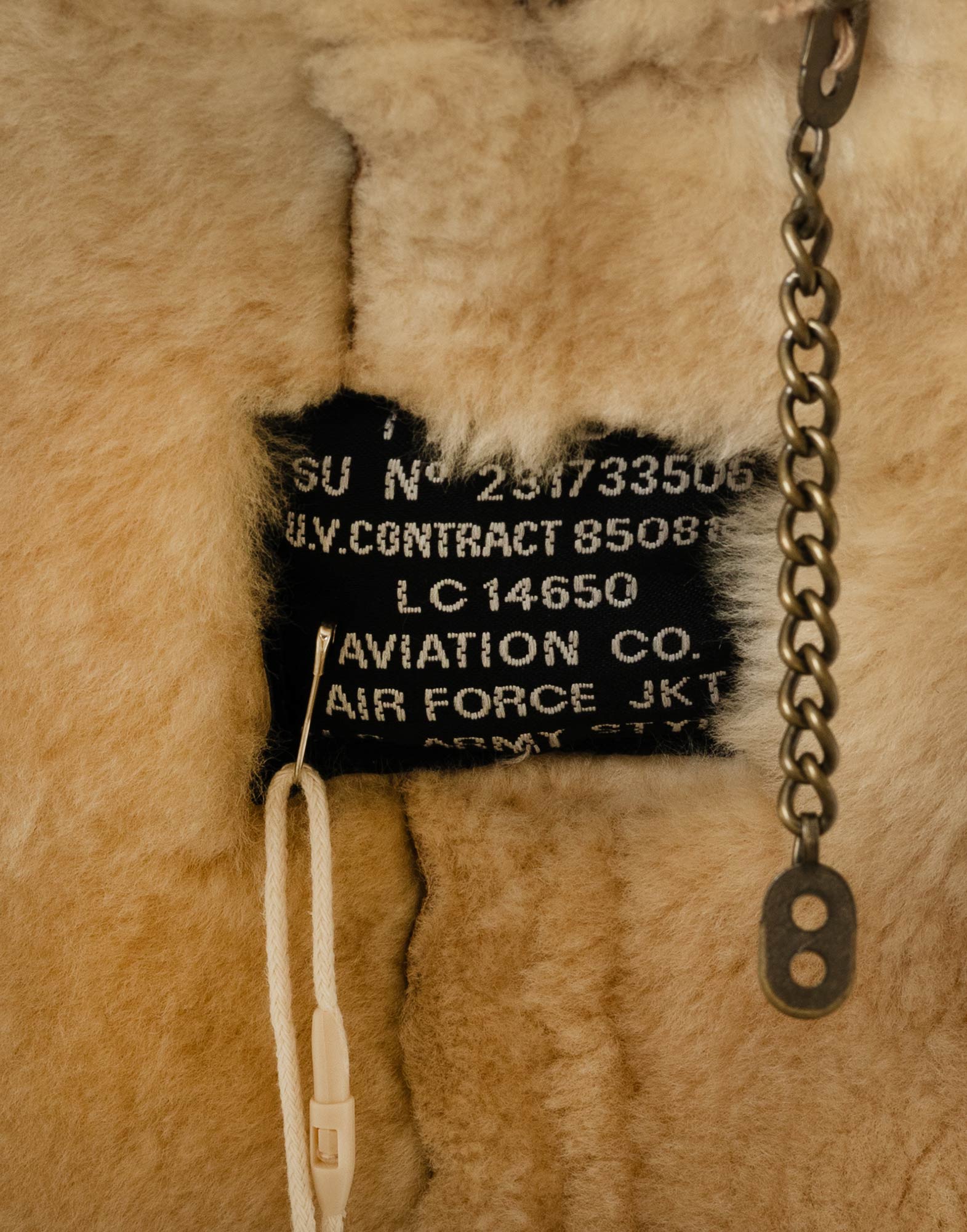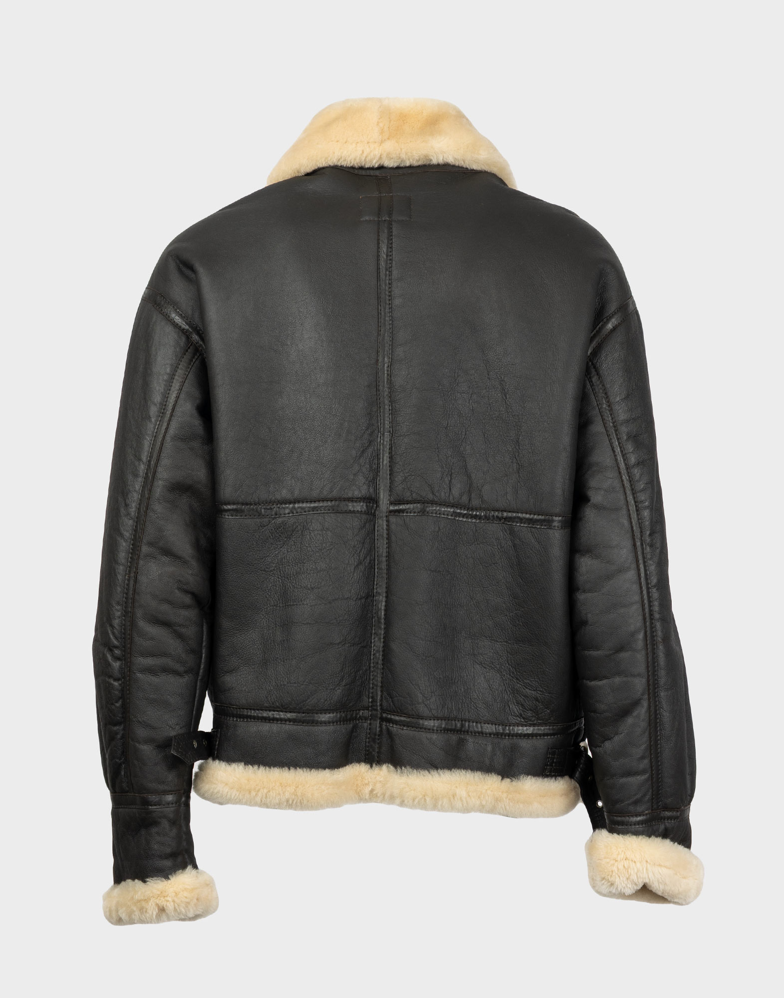1980s men’s shearling bomber jacket inspired by the legendary B3 Aviator design. Made from genuine sheepskin leather, this jacket offers warmth and rugged style. Size L.