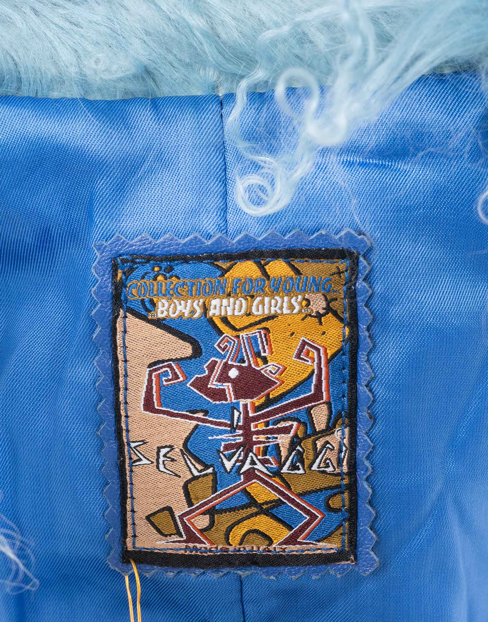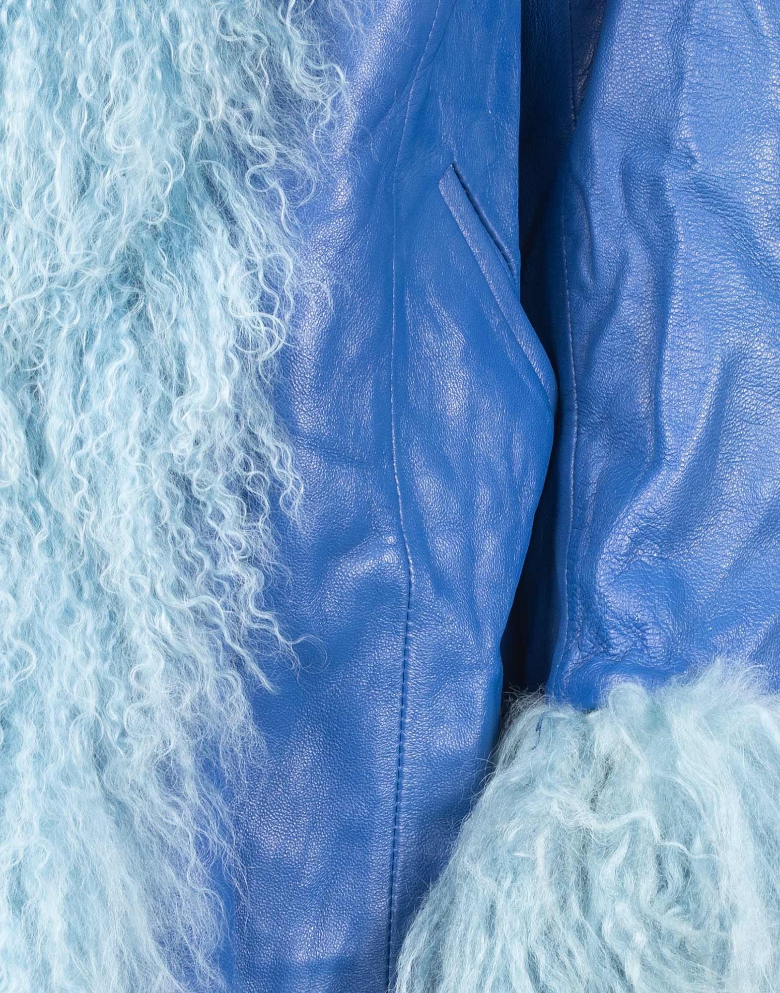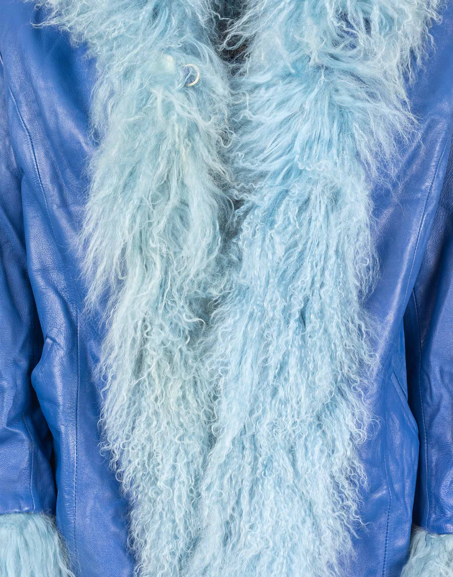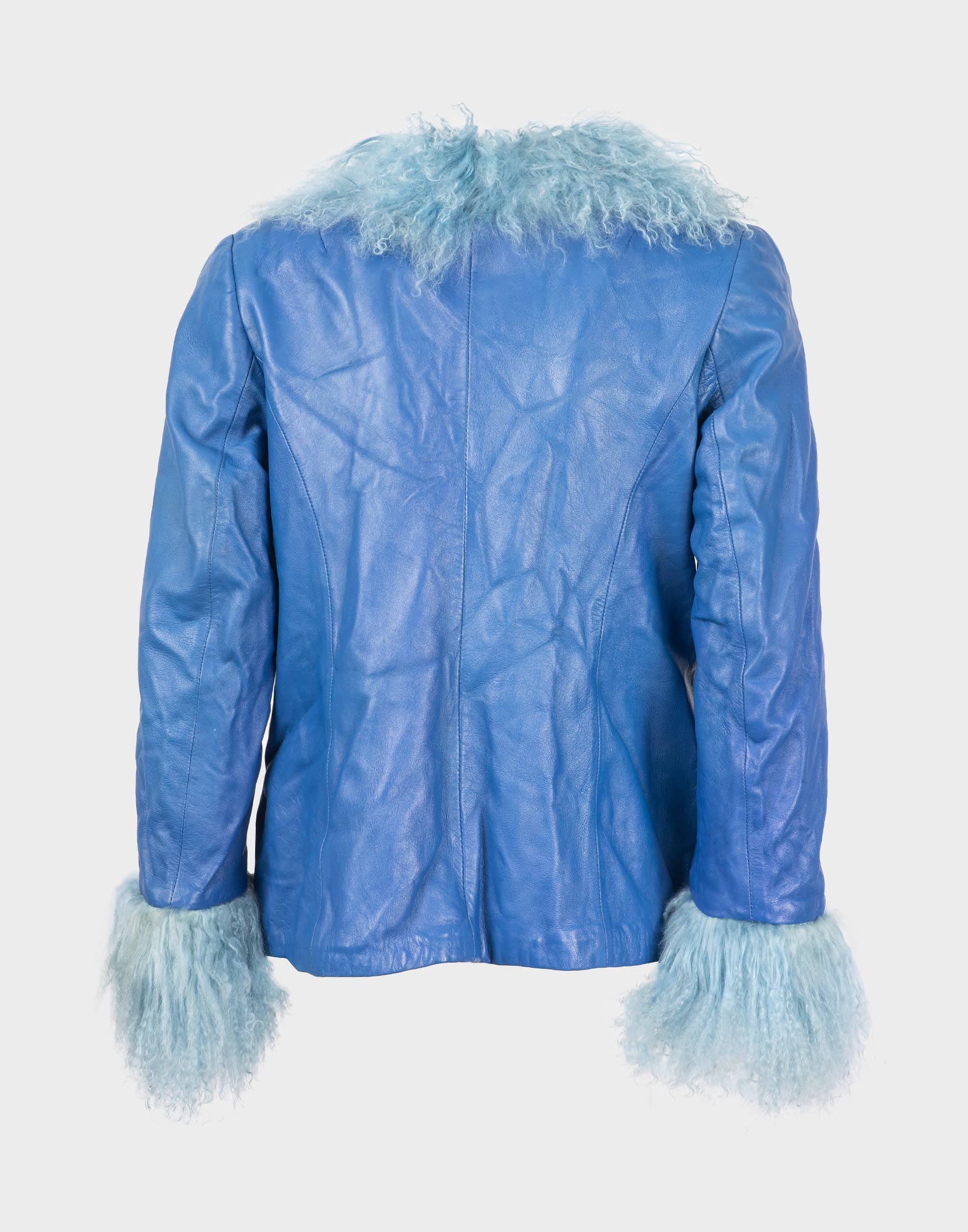 Relive the charm of the 2000s with this blue leather jacket. Featuring soft faux fur on the collar and cuffs, it embodies a true boho-hippie and Y2K style. Size M.