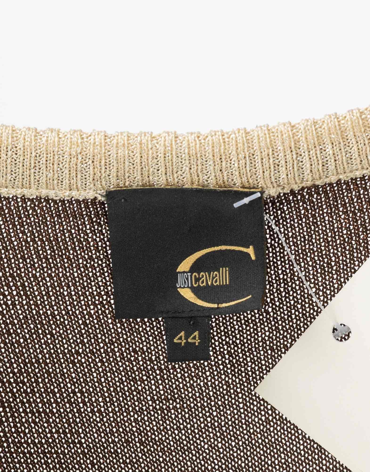 Just Cavalli, cardigan smanicato da donna anni '90. Scollo a V, chiusura con bottoni. Composizione 86% acetato, 8% lurex e 6% nylon. Taglia M.