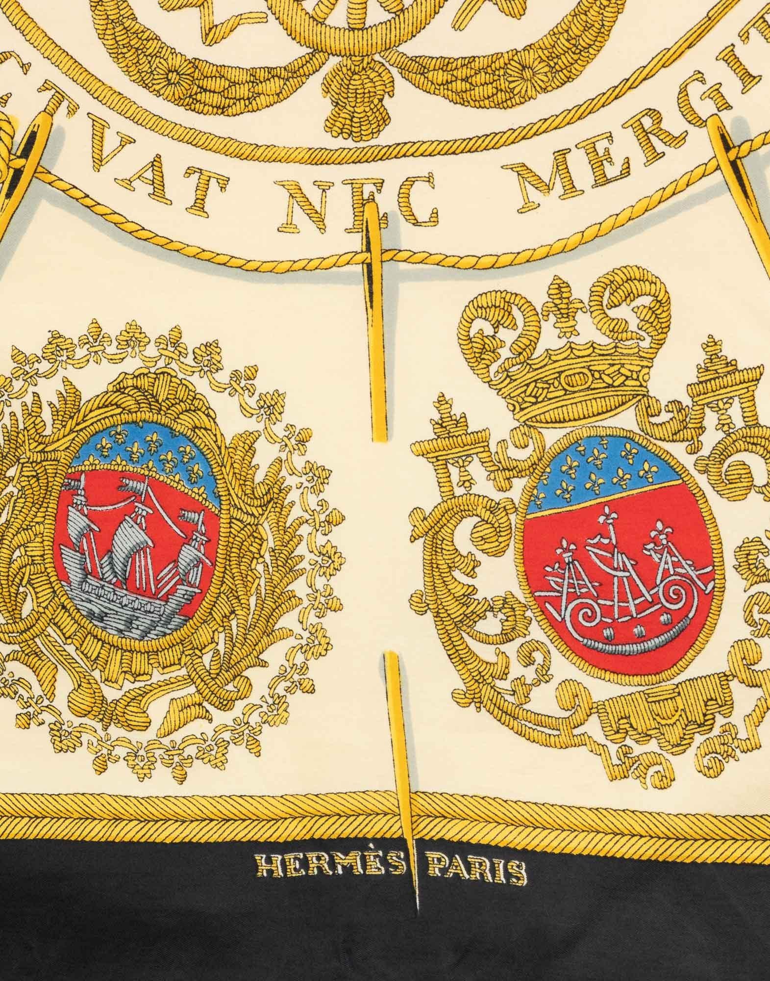 Hermes - Foulard 'Les Armes de Paris' nero anni '90