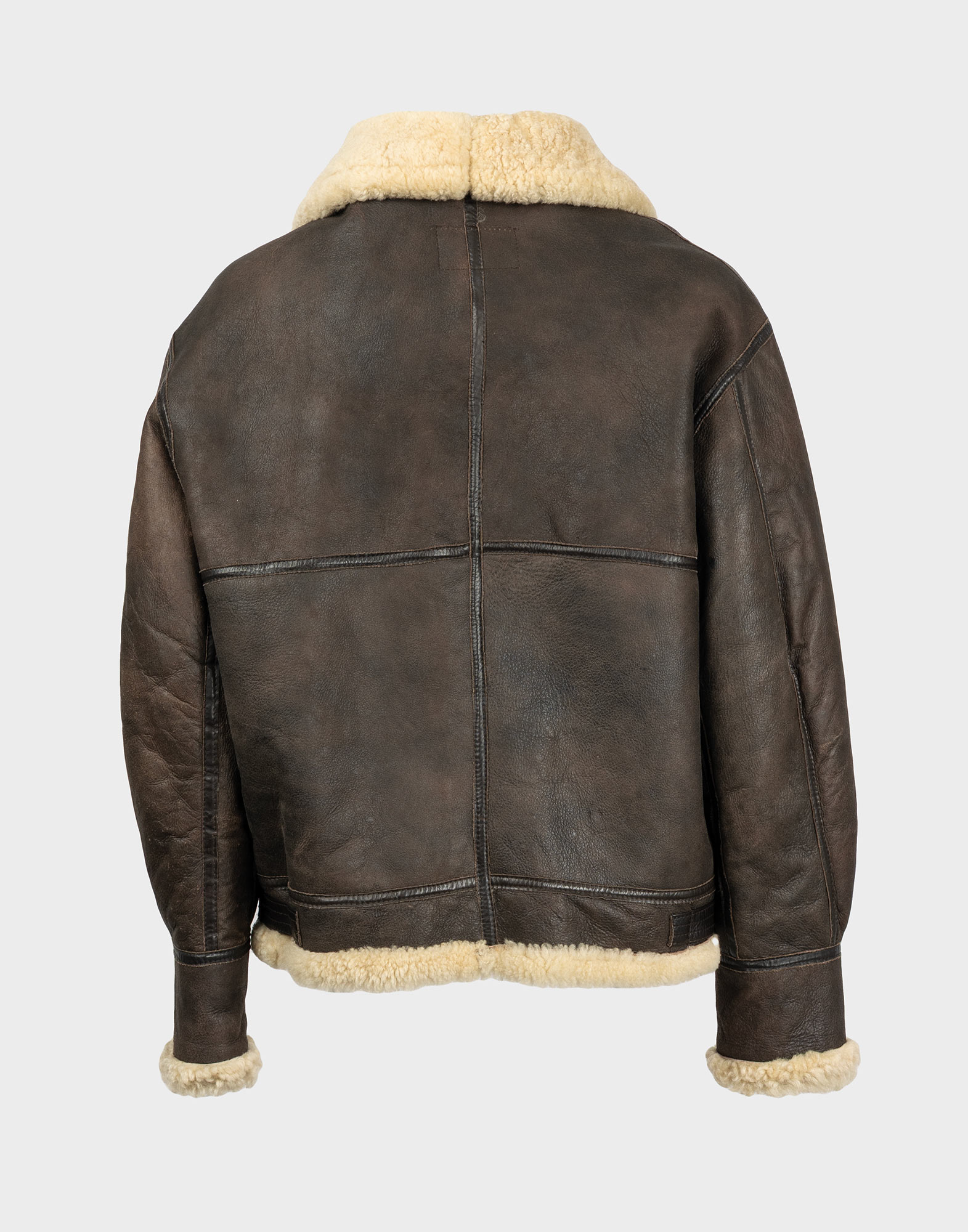 Giacca bomber in shearling da uomo anni ’80, un’icona di calore e robustezza. Questo modello, ispirato al leggendario design B3 Aviator, è realizzato in vera pelle di montone shearling. Taglia L.