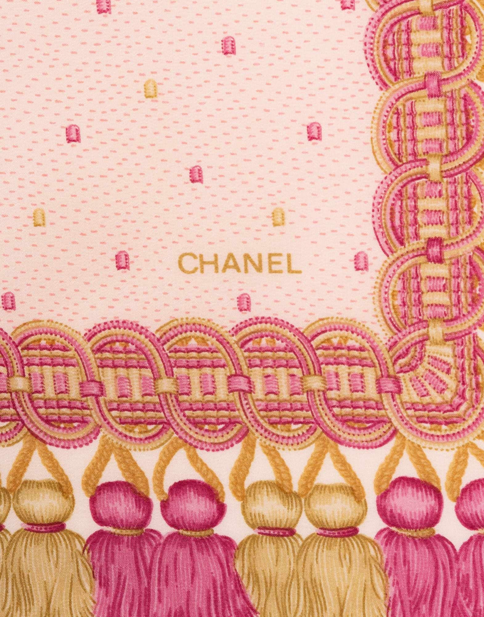 Chanel - Roze jacquard zijden sjaal uit de jaren 90