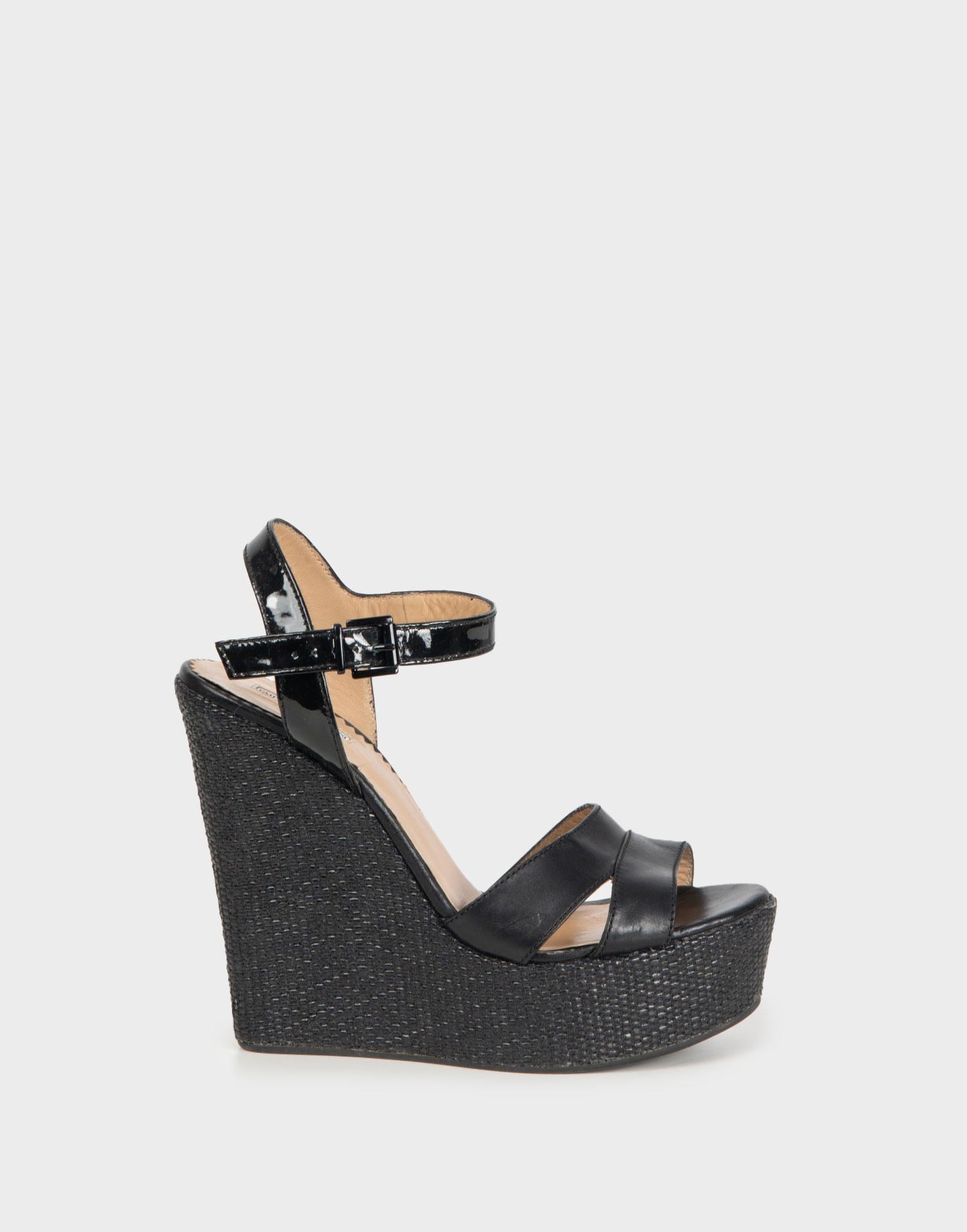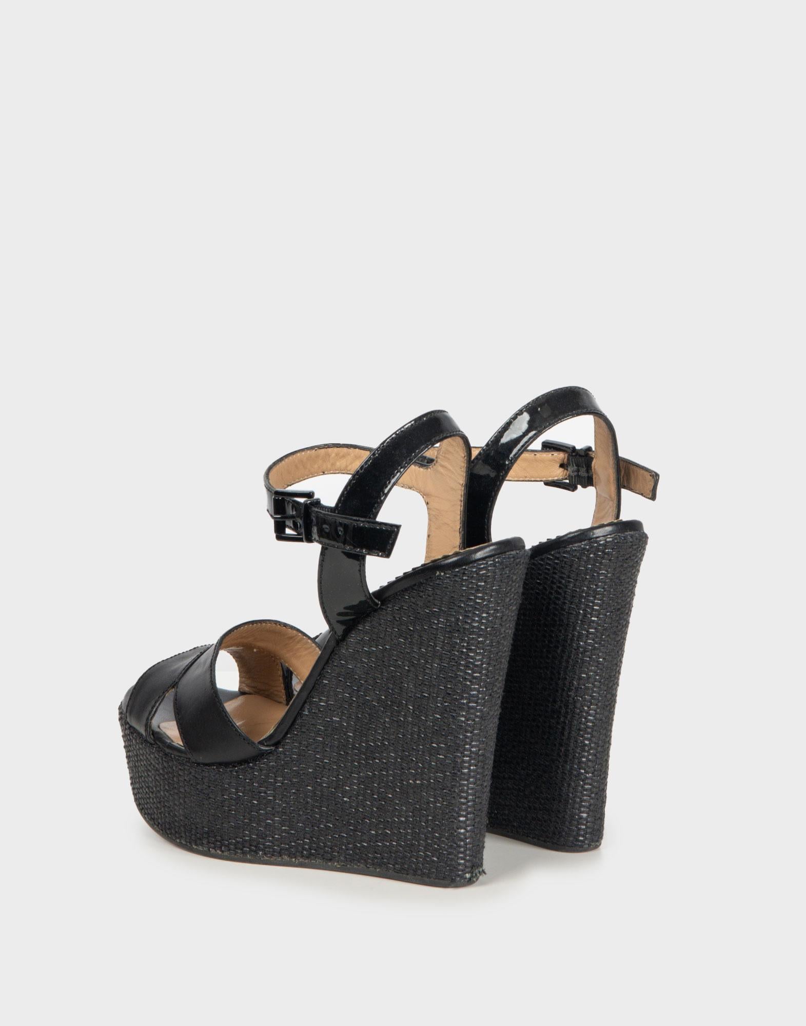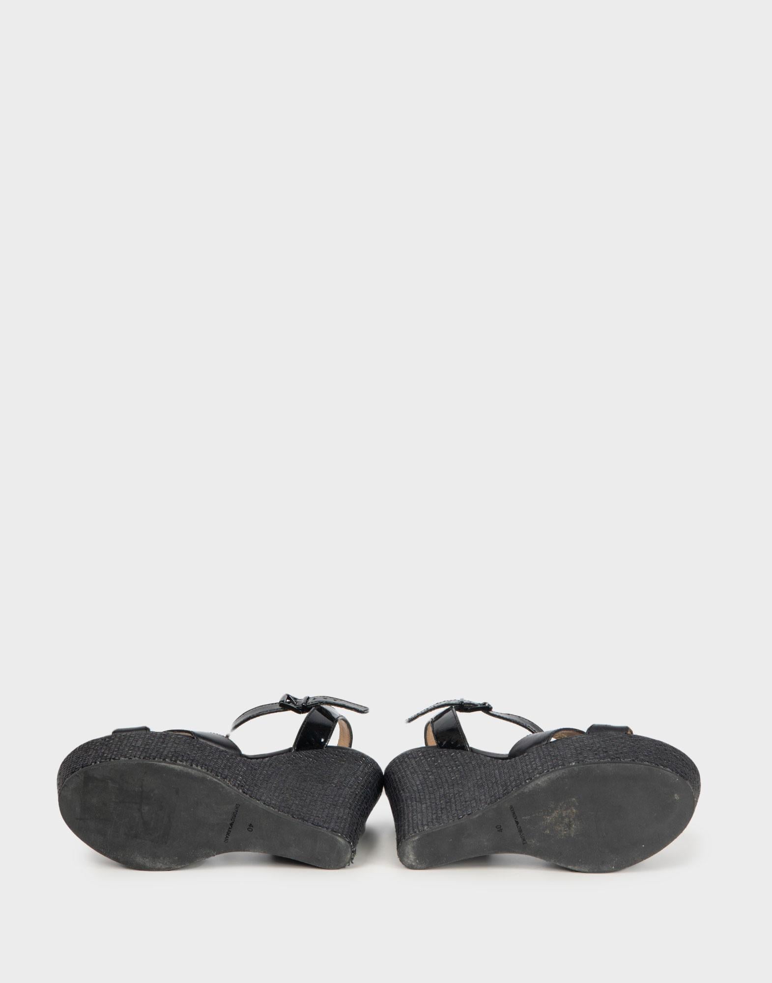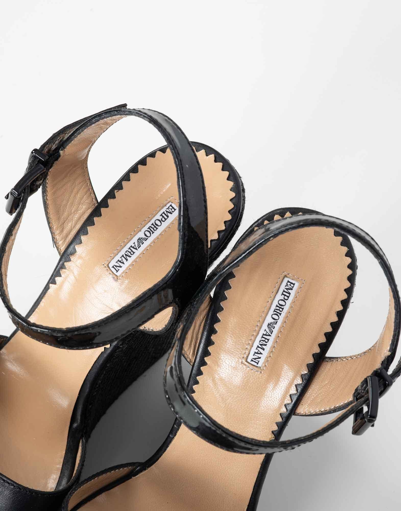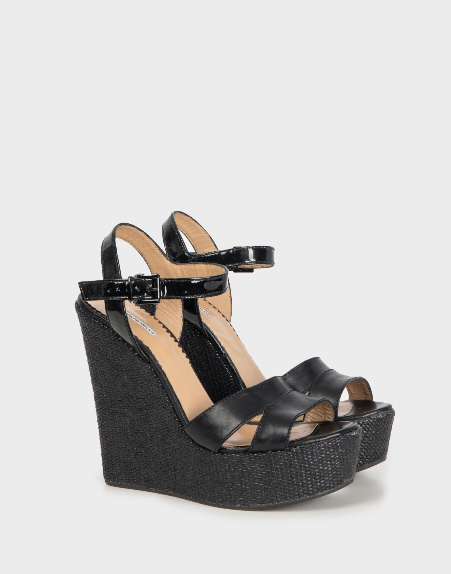 Emporio Armani - Sandali con zeppa neri in pelle anni 2000