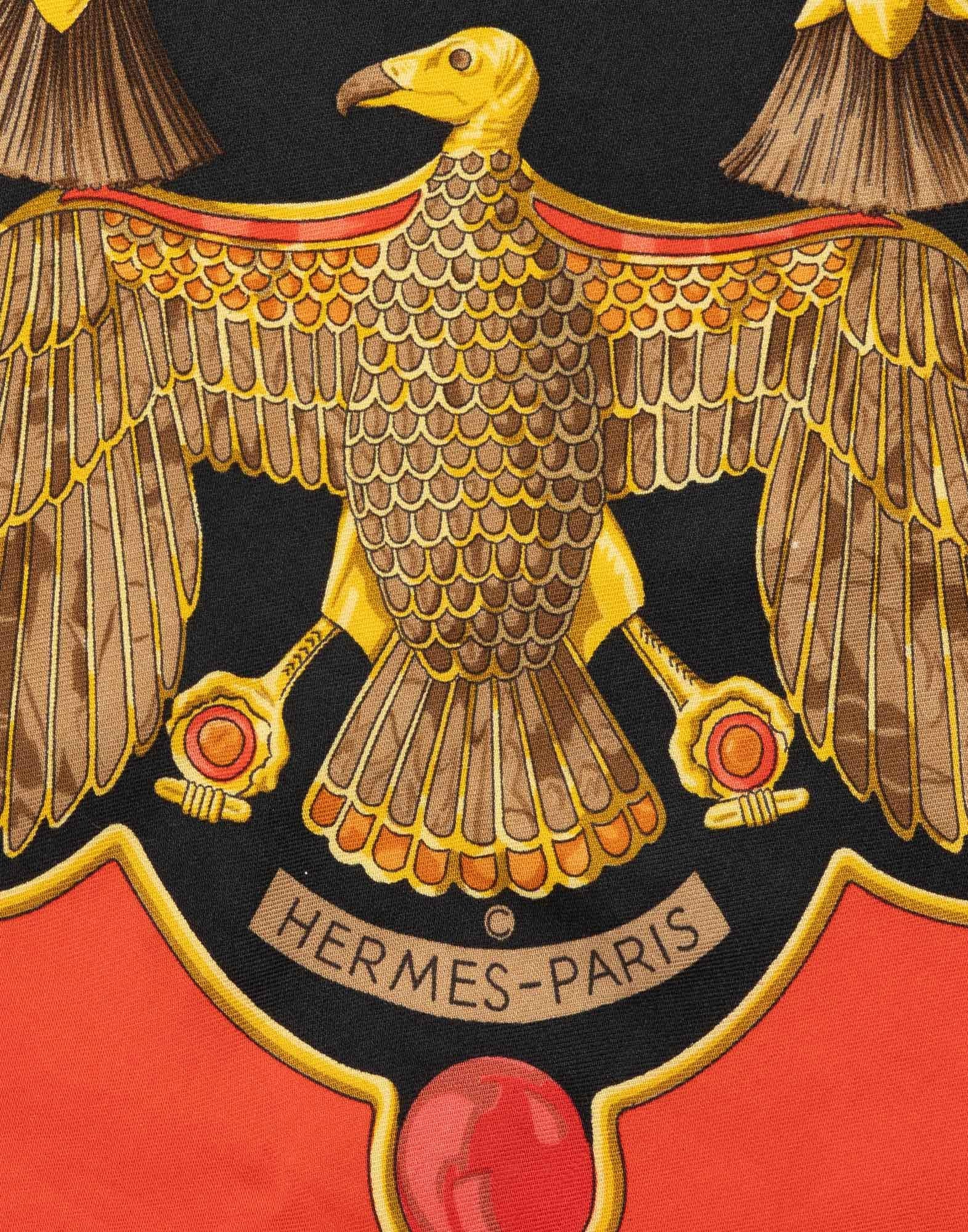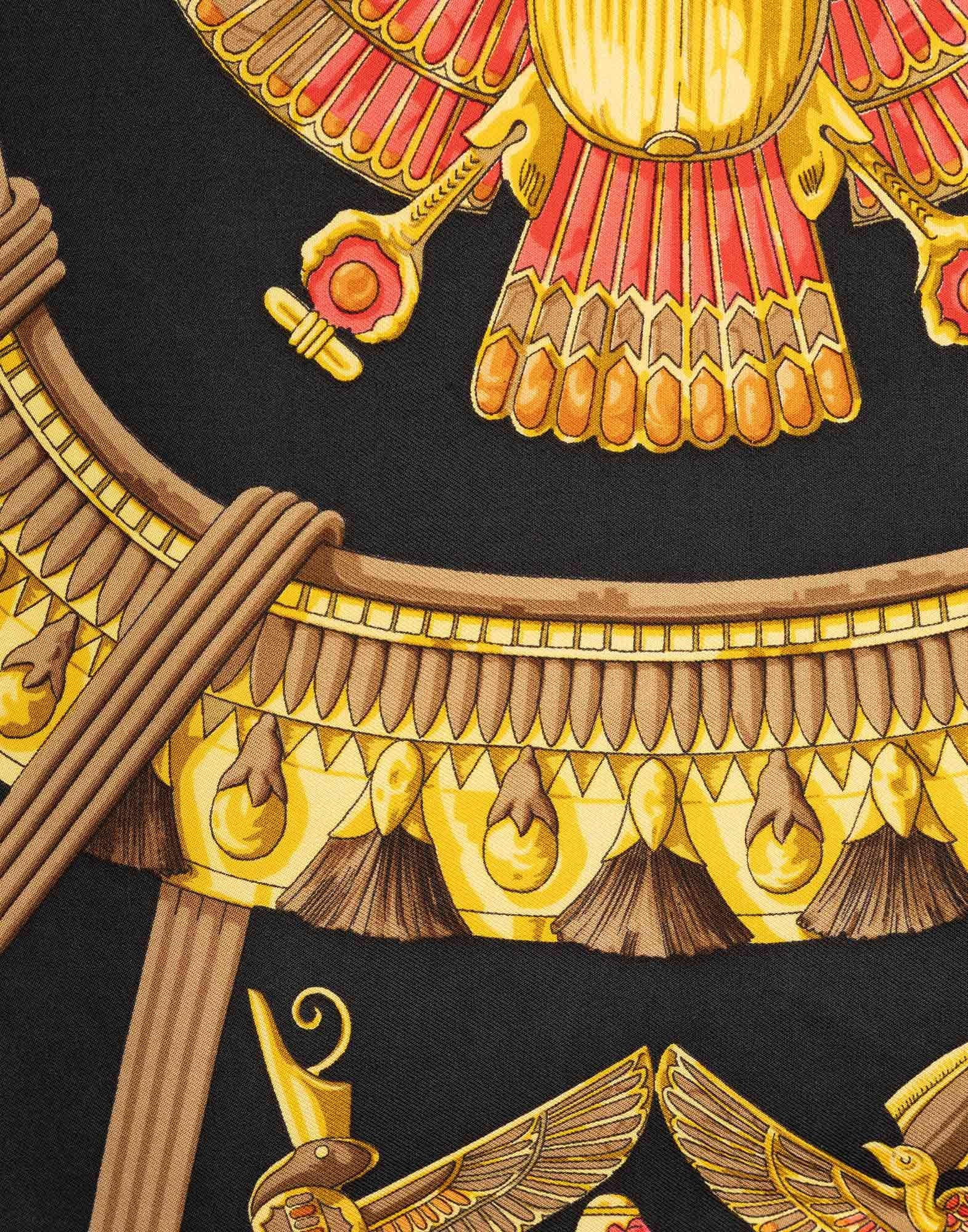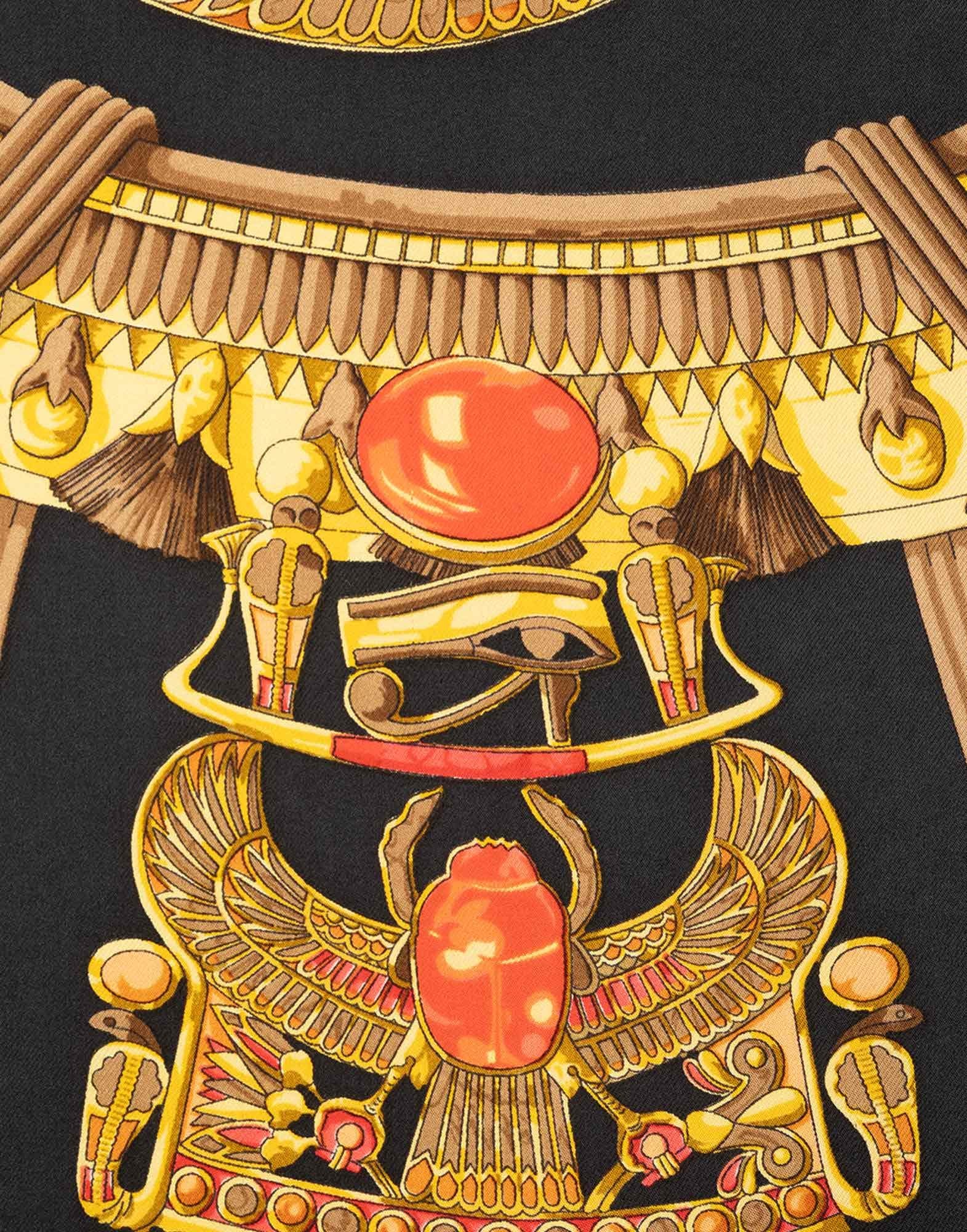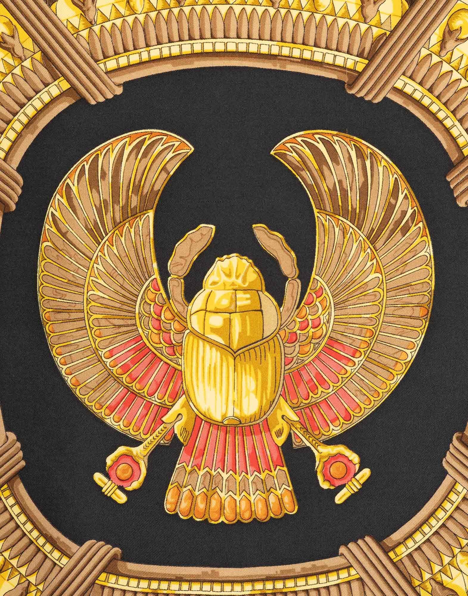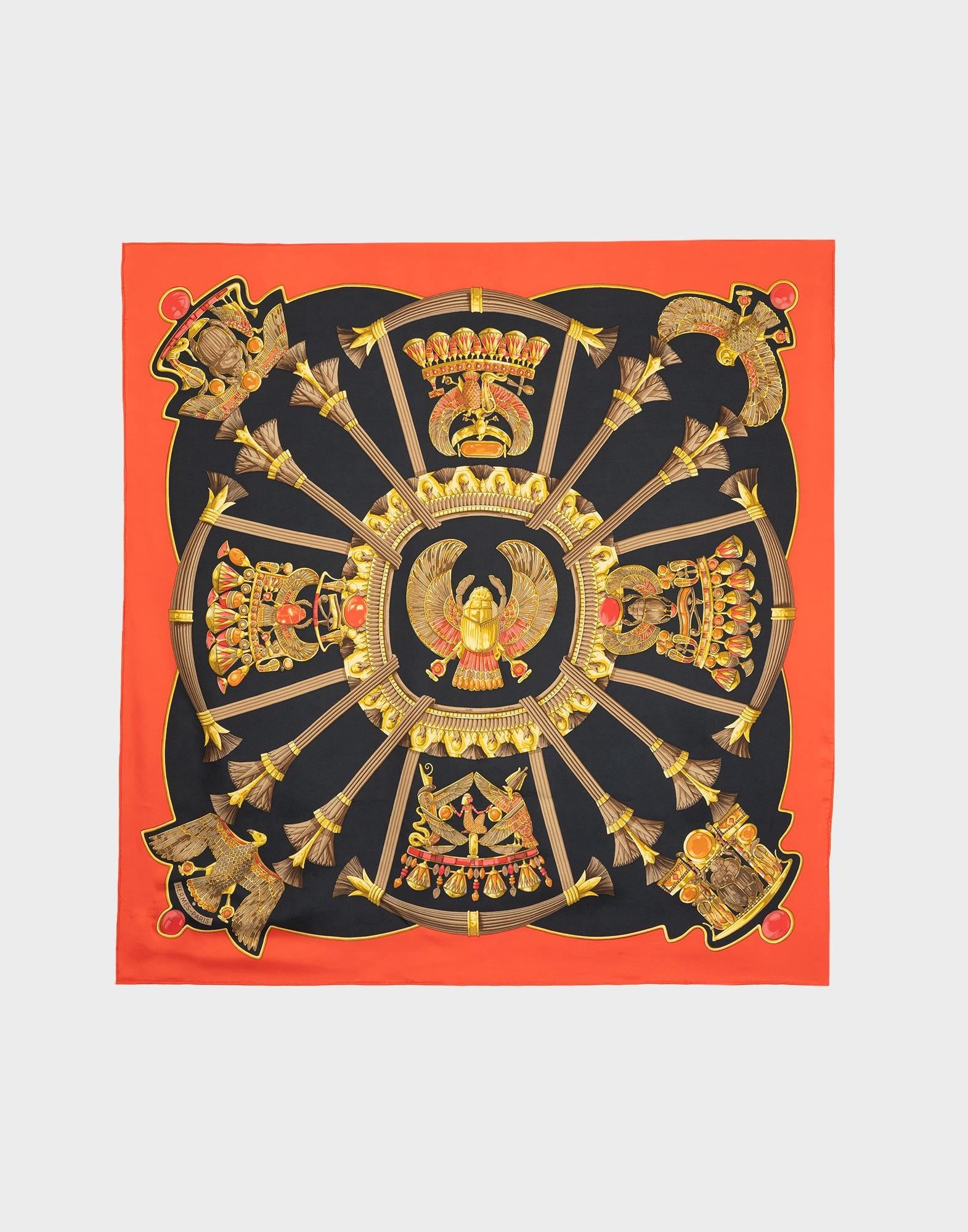 Hermes, foulard Scarabeo Egiziano anni '90 in 100% seta nero con cornice rossa. Dimensioni: 89 x 85 cm. *il foulard presenta macchie e fili tirati *il foulard non viene spedito con la sua scatola originale