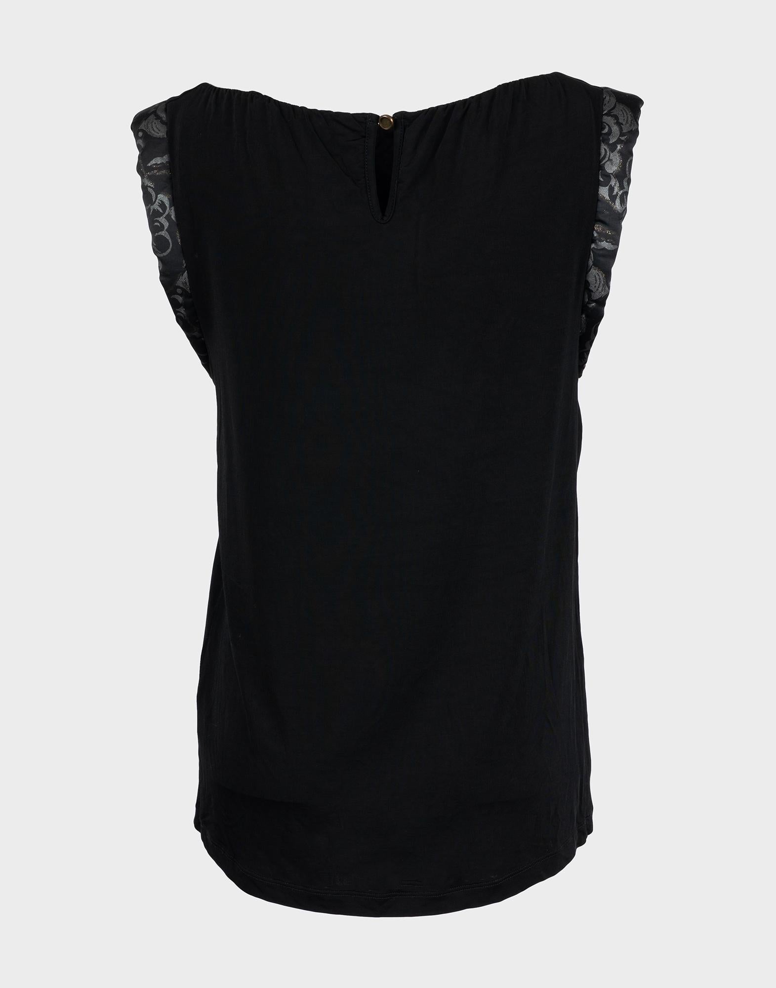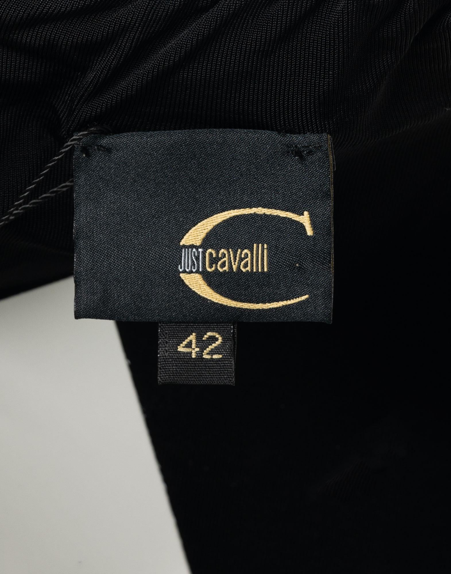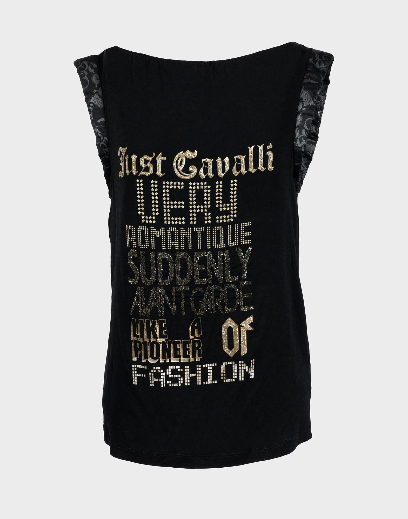 Just Cavalli, top nero senza maniche, realizzato in poliestere. Spalline imbottite e scritte sul davanti. Taglia 42IT. Spalle: 41 cm Busto: 46 cm Lunghezza: 63 cm
