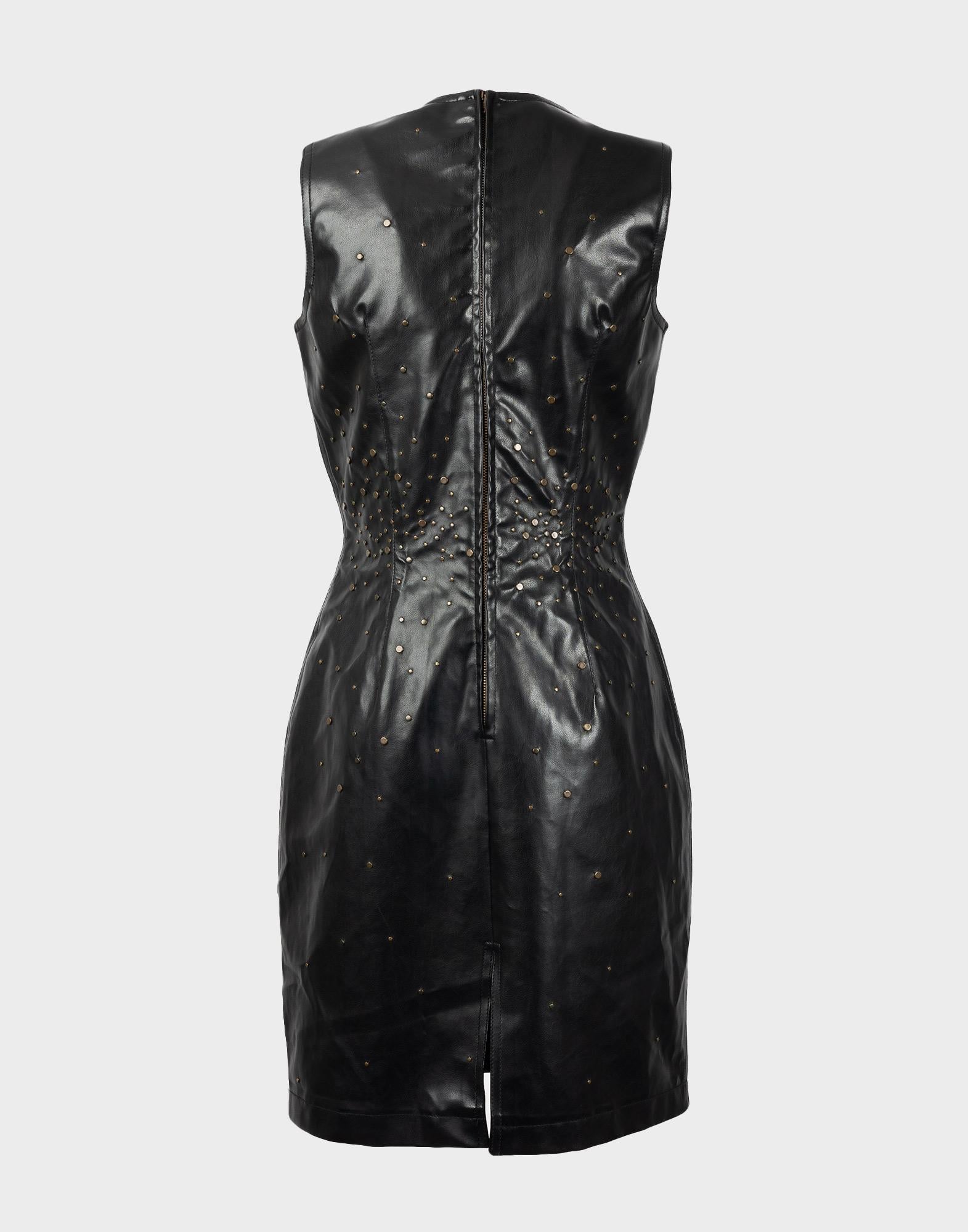 Moschino Jeans, abito nero anni 2000 realizzato in PVC. Chiusura posteriore con zip. Taglia 44IT. Spalle: 32 cm