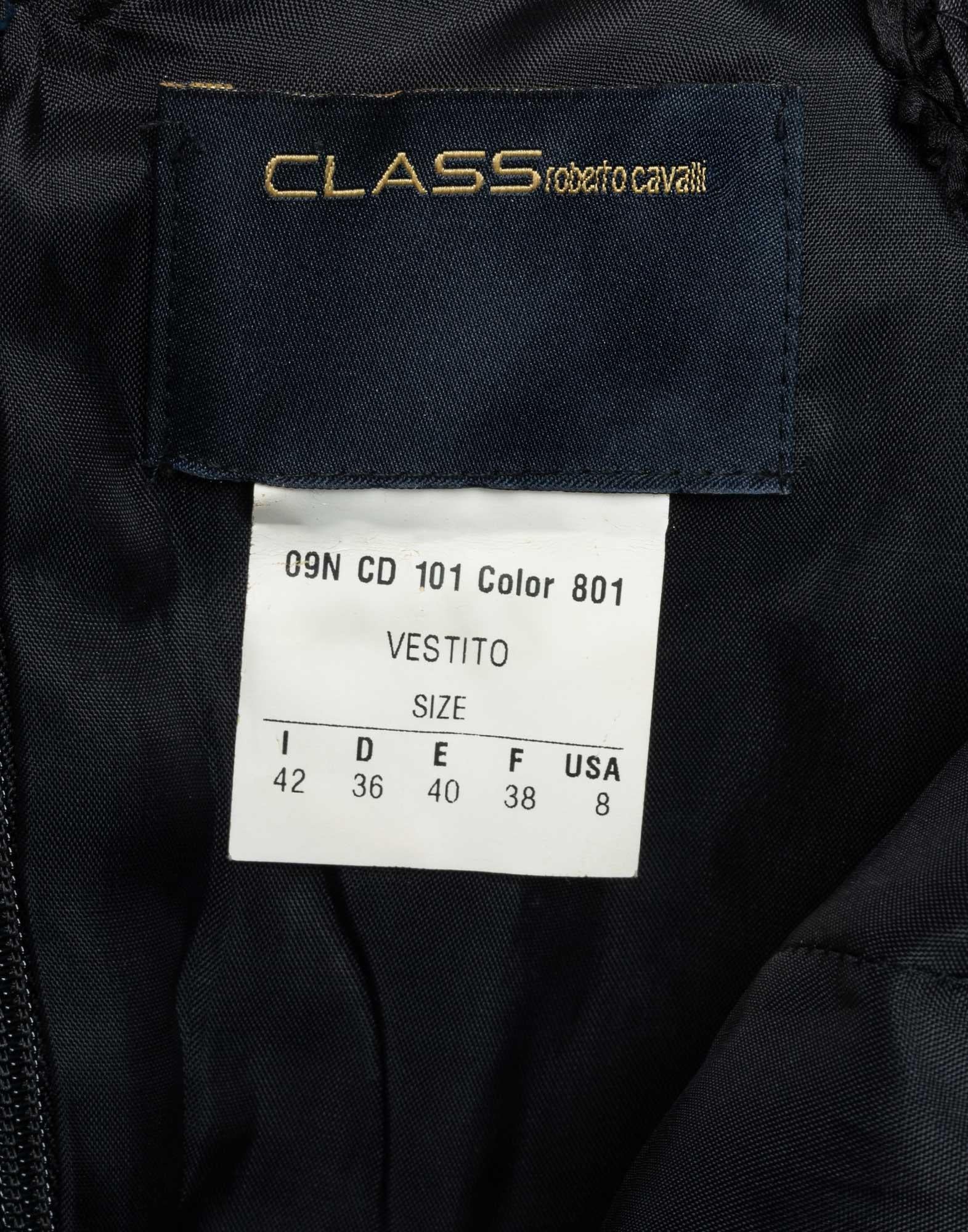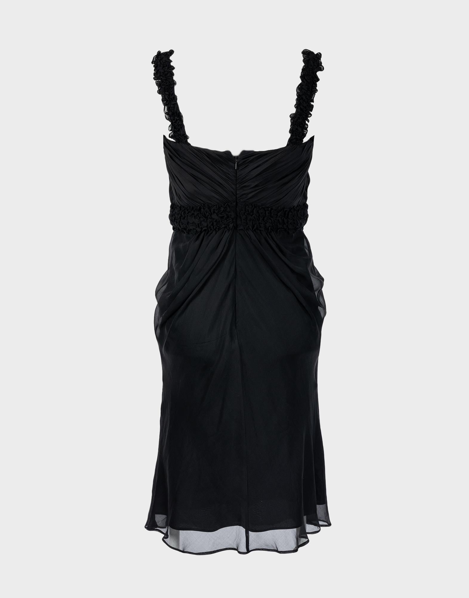 Roberto Cavalli, abito nero anni 2000 in 100% seta con arricciature sul davanti. Chiusura posteriore con zip. Taglia 42IT.