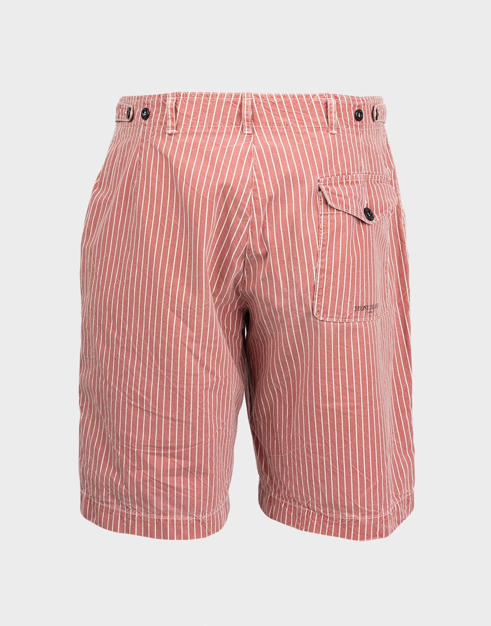 Stone Island - Pantaloncini rossi a righe in cotone