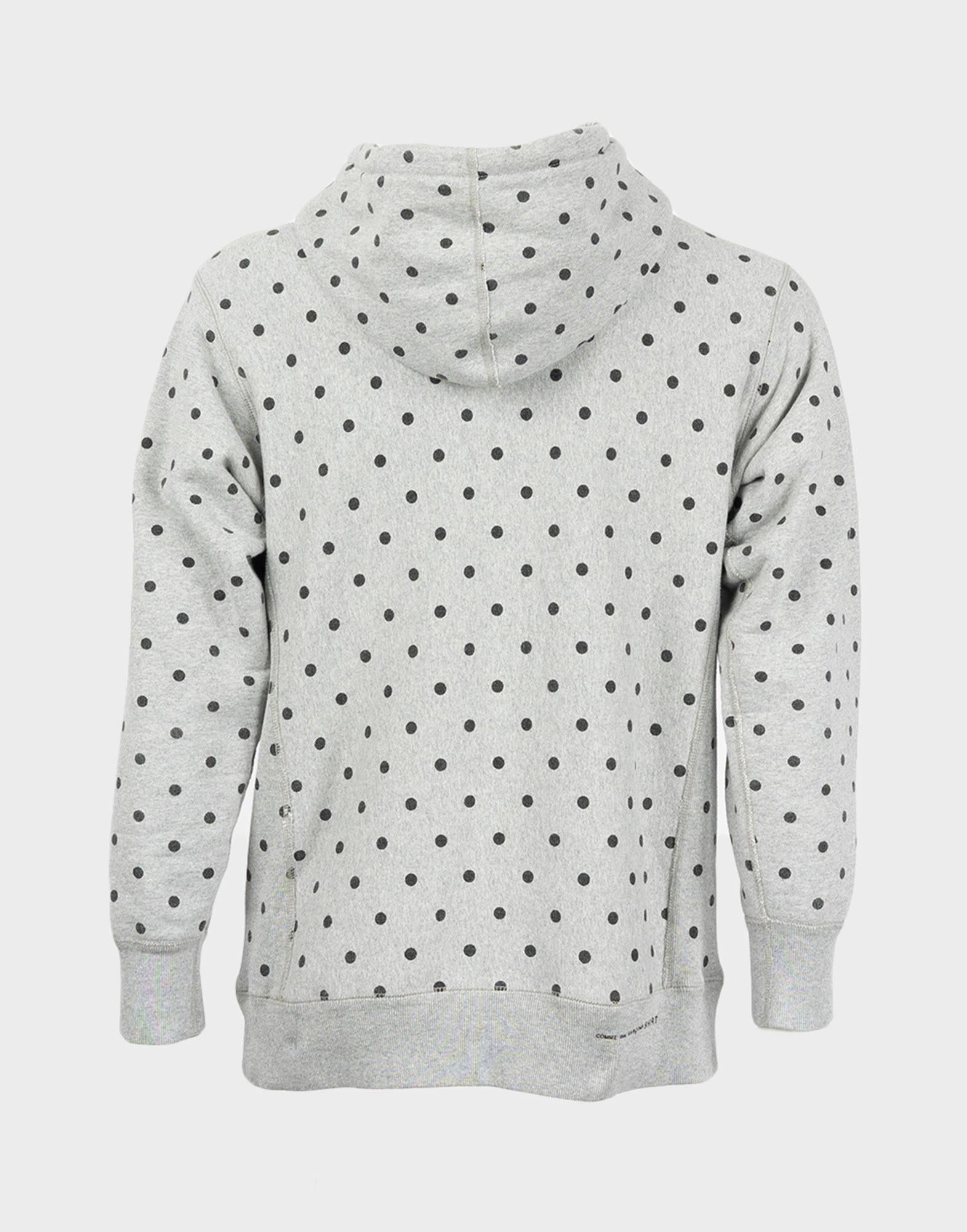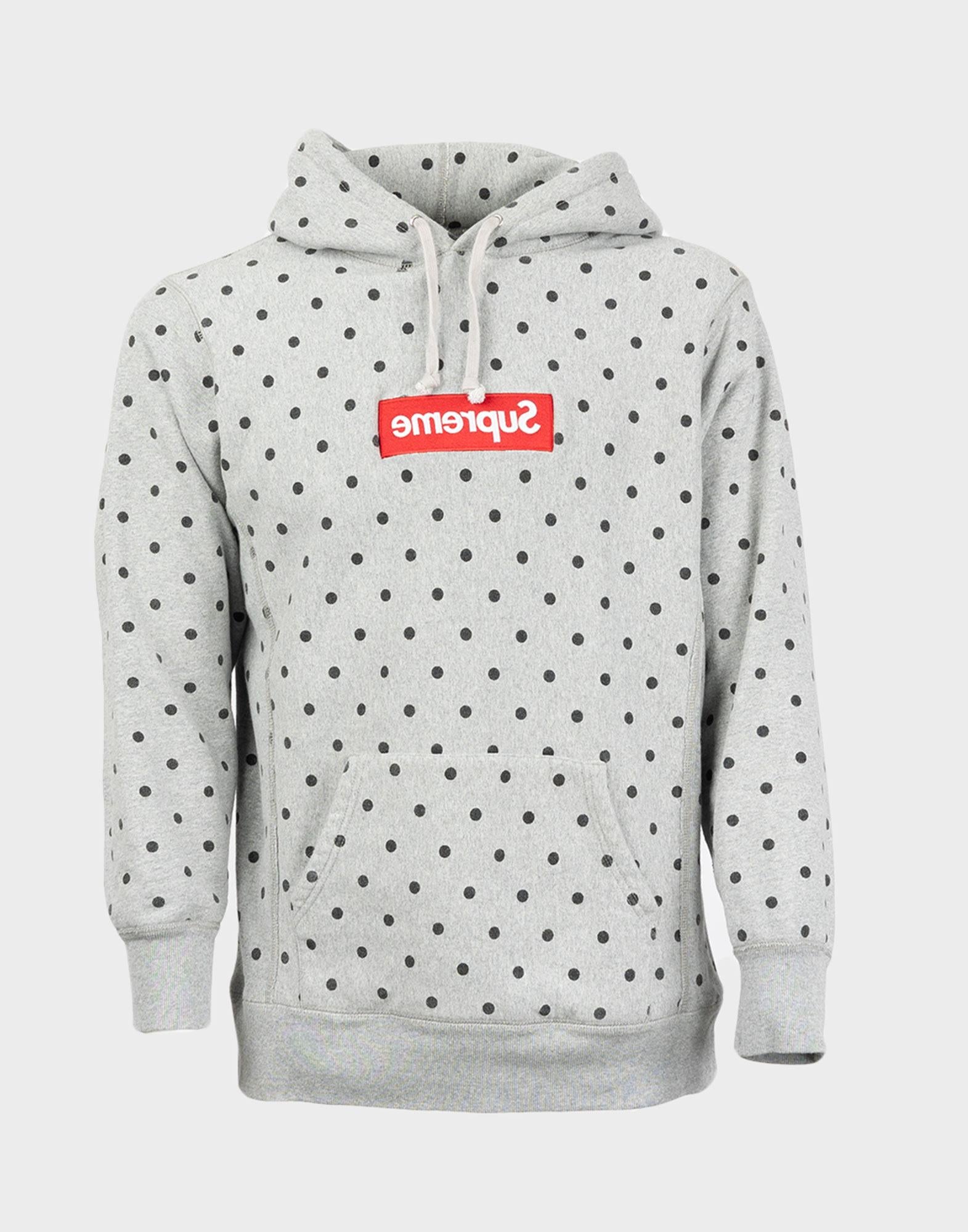 Supreme x Comme Des Garcons, felpa da uomo con cappuccio grigia con pallini neri. Collezione 2012. Taglia L.