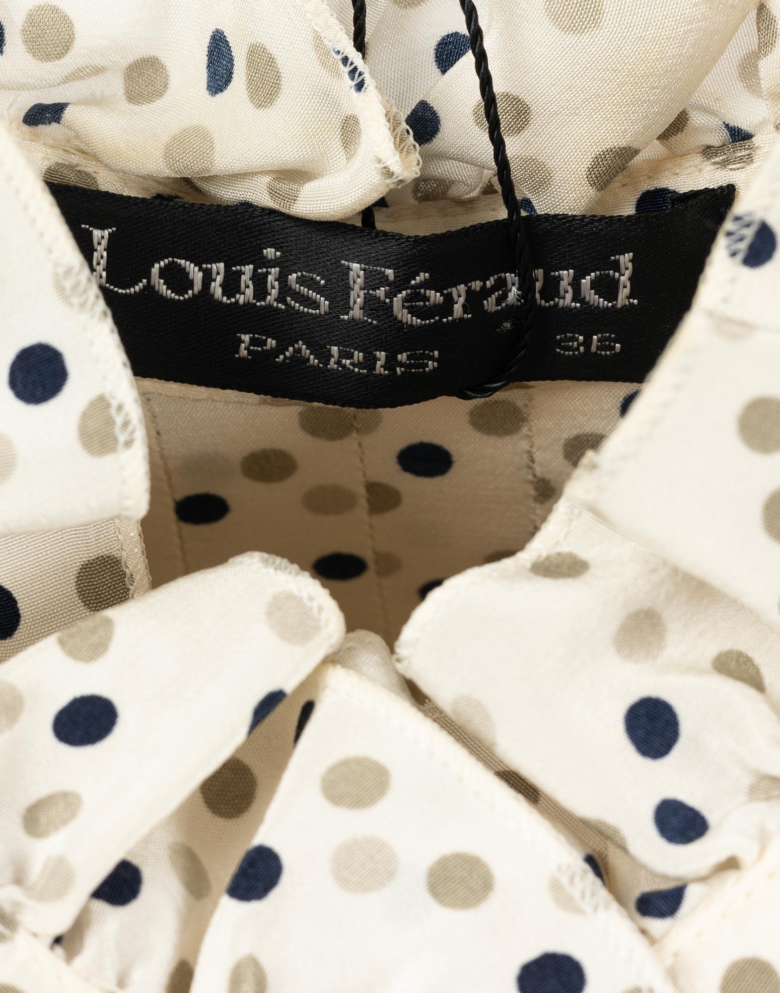 Louis Feraud, abito anni 90 in 100% seta bianco perla lunga a fantasia a pois. Elastico in vita con cintura, chiusura con bottoncini. Taglia 36FR.