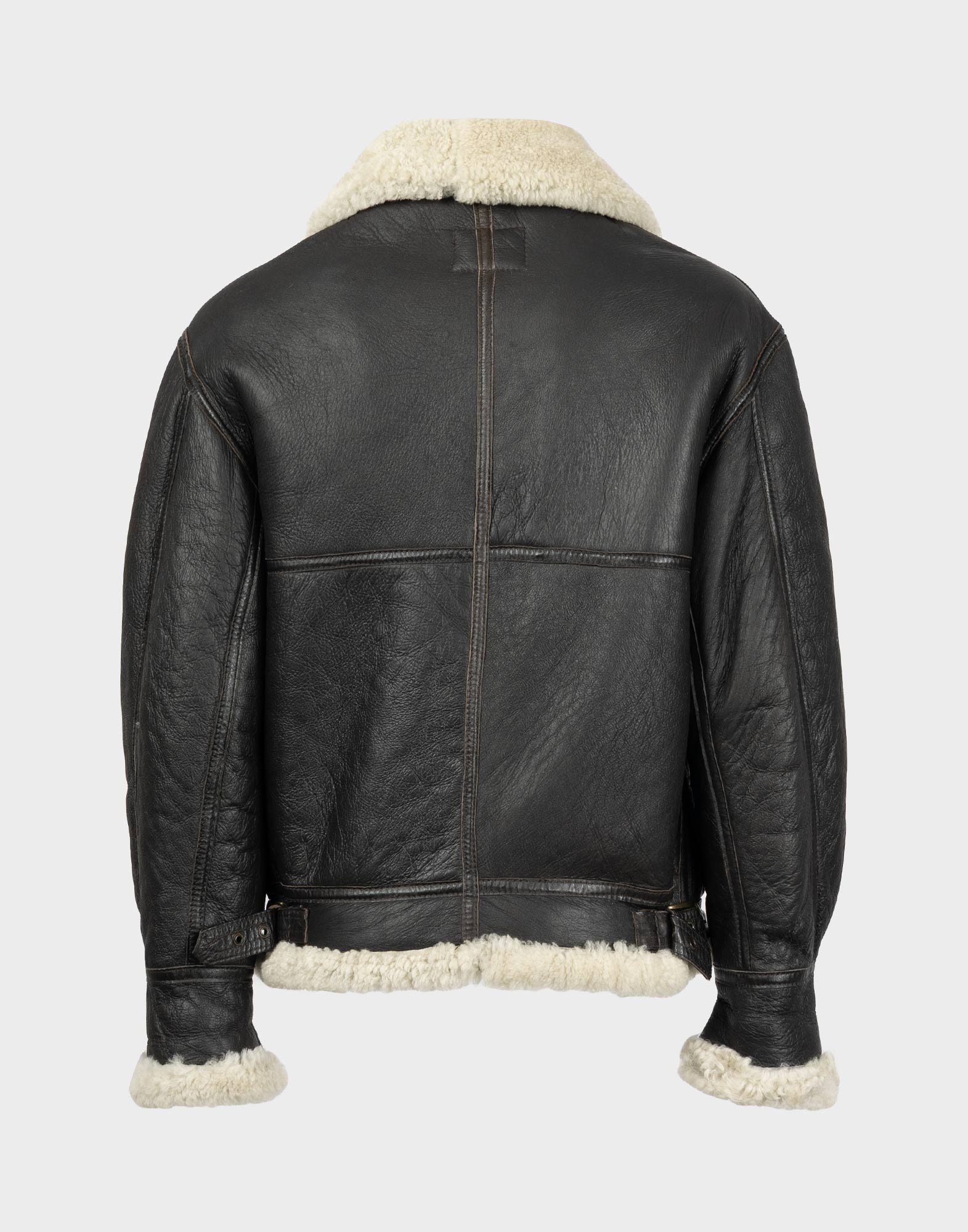 Giacca bomber in shearling da uomo anni ’80, un’icona di calore e robustezza. Questo modello, ispirato al leggendario design B3 Aviator, è realizzato in vera pelle di montone shearling. Taglia S.